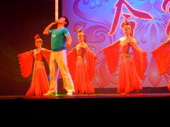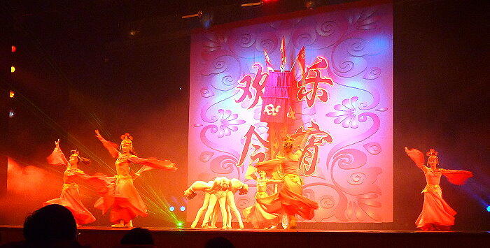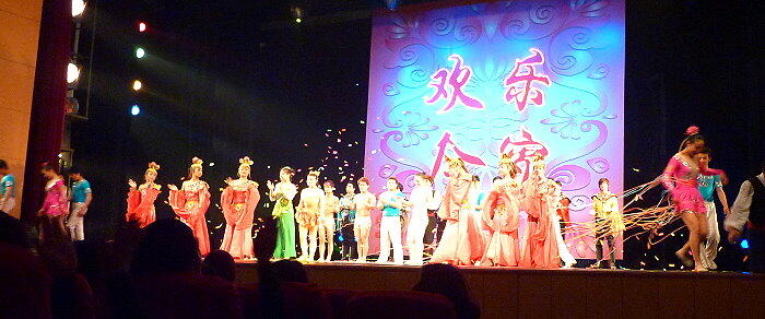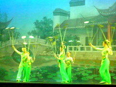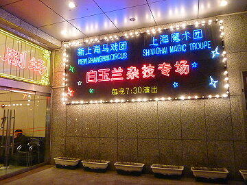 食事を摂って幸せ一杯で、今度は上海雑技団の演技を見に行く。我々が行った白玉蘭劇場は伝統的な衣装と雑