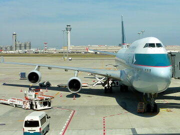 ハチドリのロゴはどこのエアラインかな? CX458がブリッジに到着
