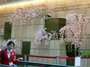第1ターミナルビルのあちこちに桜が咲いていました。聞いてみると造花ということだった。